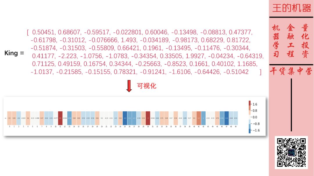 单词 King 由 50 个实数来表示,即用一个 50 维的向量能代表单词 King。