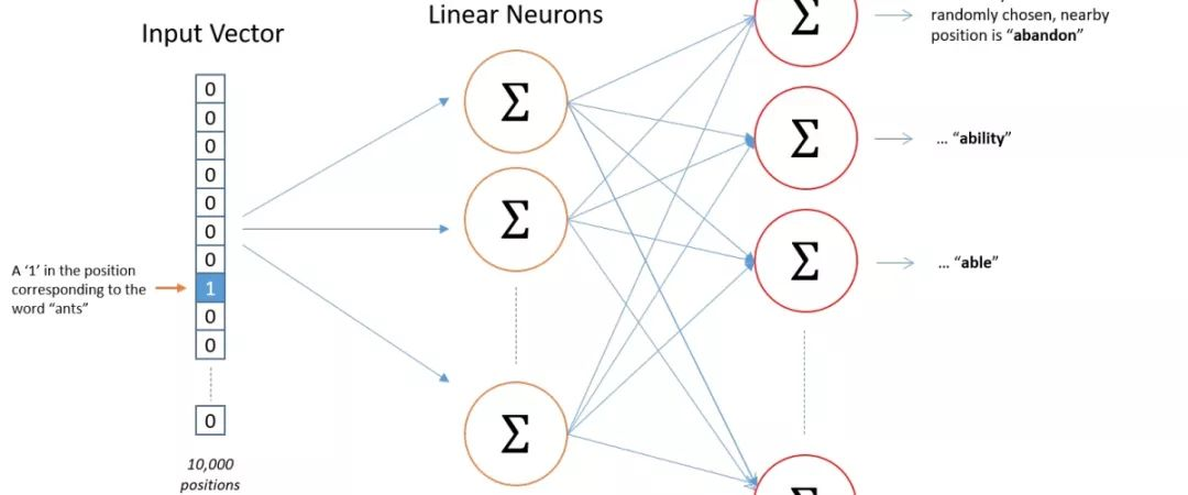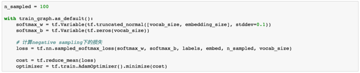 数据预处理结束后,就需要来构建我们的模型。在模型中为了加速训练并提高词向量的质量,我们采用负采样方式进行权重更新。