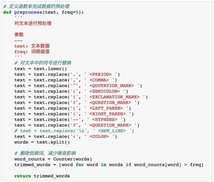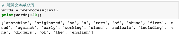 上面的函数实现了替换标点及删除低频词操作,返回分词后的文本。