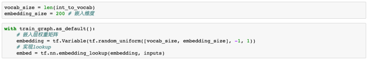 嵌入层的lookup通过TensorFlow中的embedding_lookup实现。