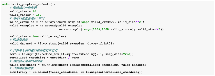 在上面的步骤中,我们已经将模型的框架搭建出来,下面就让我们来训练训练一下模型。为了能够更加直观地观察训练每个阶段的情况。我们来挑选几个词,看看在训练过程中它们的相似词是怎么变化的。