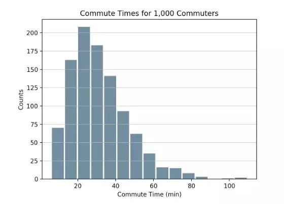 plt.title('Commute Times for 1,000 Commuters')