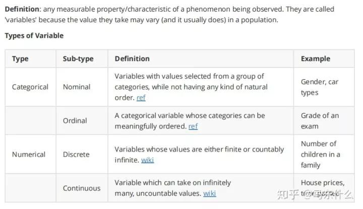 注:实际上,由于各种原因,我们可能存在混合类型的变量。例如,在信用评分中,“未支付状态”是一个通用变量,可以取值1、2、3,这意味着 客户在他们的帐户中错过了1-3次付款.如果客户违约,它也可以获得D值。在数据清理的某些步骤之后,我们可能不得不转换数据类型。