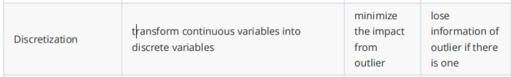 离散化,这个在评分卡中很常用,缺失值和异常值直接放到一个单独的箱里。