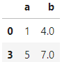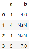 df = pd.DataFrame({'a': [1, 4, 1, 5],'b': [4, None, np.nan, 7]})
