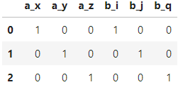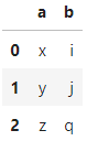 df = pd.DataFrame({'a': ['x', 'y', 'z'],'b': ['i', 'j', 'q']