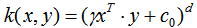 metrics.pairwise.polynomial_kernel(X, Y, degree=3,gamma=0.2,coef0=1)#>