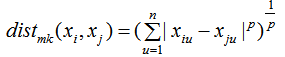 ,计算样本距离最常用方法的是“闵可夫斯基距离”(Minkowski distance)。