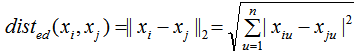 p=2时,闵可夫斯基距离即欧氏距离(Euclidean distance)