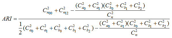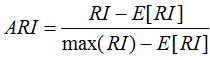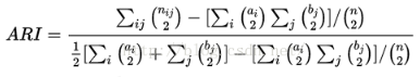ARI解决了RI不能很好的描述随机分配簇类标记向量的相似度问题,ARI的定义: