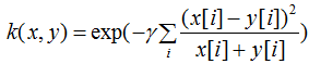 metrics.pairwise.chi2_kernel(X, Y, gamma=0.2)#>