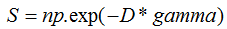 其中D是样本间的距离,gamma常取(1/features),S为映射的核。