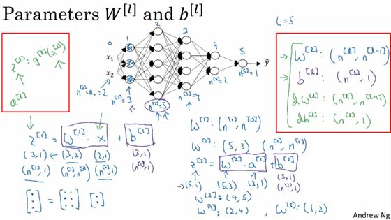 As seen in lecture, the number of layers is counted as the number of hidden layers + 1. The input and output layers are not counted as hidden layers.(正如视频中所看到的那样,层数被计为隐藏层数+1。输入层和输出层不计为隐藏层。)