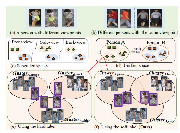 现有的大多数viewpoint-based的人Re-ID方法将来自每个视点的图像投影到不相关的子空间中。他们仅对单个视点内部的身份级别分布进行建模,而忽略了不同视点之间的潜在关系。为了解决这个问题,文章提出了一种新颖的方法,称为具有角度正则化的视点感知损失。文章的方法不是将每个视点的一个子空间投影到一个统一的超球面中,而是在身份级别和视点级别上对特征分布进行有效建模。此外,文章没有将不同的视点建模用于常规视点分类的硬标签,而是引入了视点感知的自适应标签平滑规则化(VALSR),该功能将获得软标签分配给特征表示。