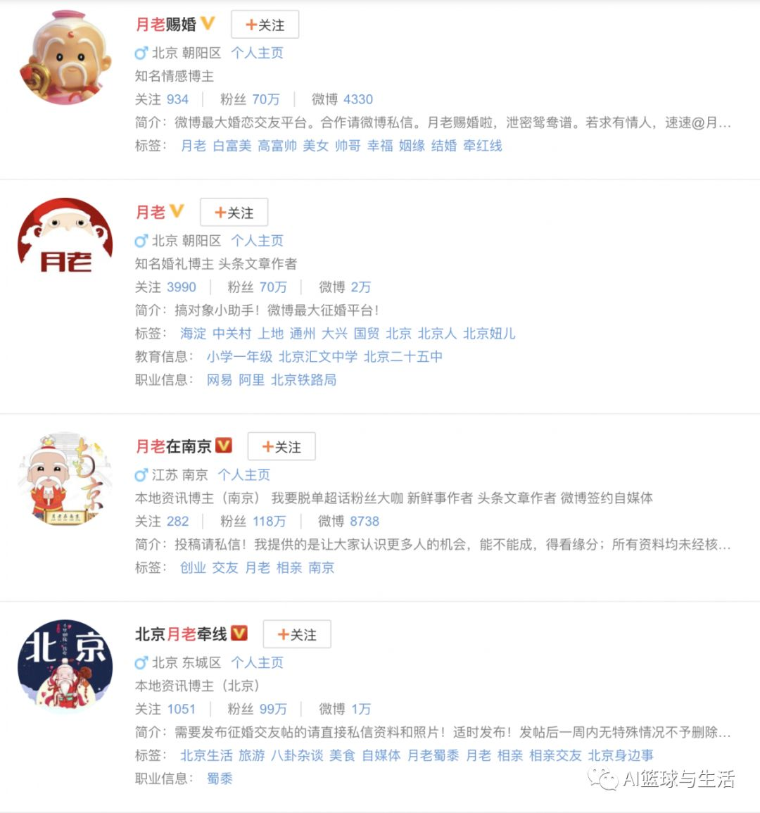 首先小编从微博上爬取了江浙沪一带相对正规的相亲平台,里面有相亲者的一些相关信息,包括了年龄,身高,收入,户籍等等,根据所爬取到的数据,再进行进一步的分析和挖掘。