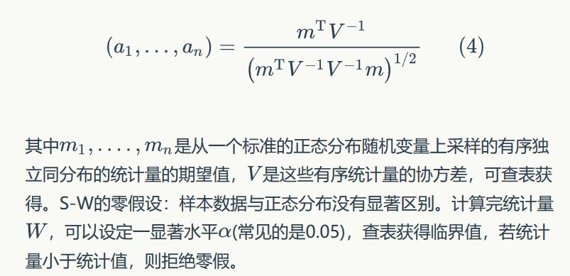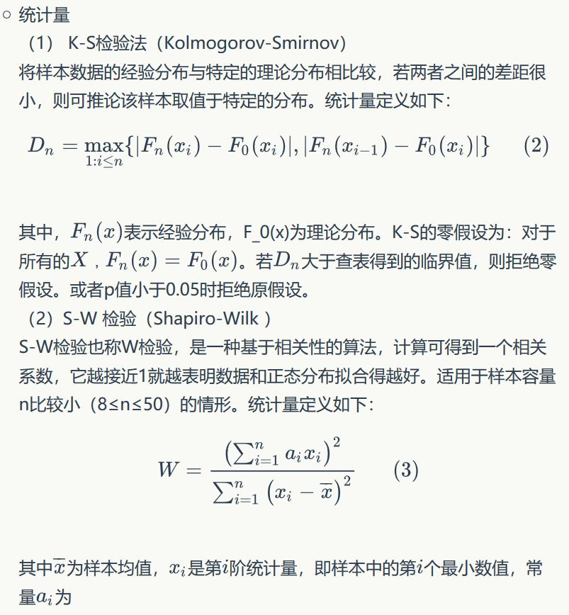 B. Kolmogrov-Smirnov正态检验中的统计量所对应的p值小于0.05;【对。ks正态检验原假设是两个数据分布一致或者数据符合正态分布,p值小于0.05拒绝原假设】