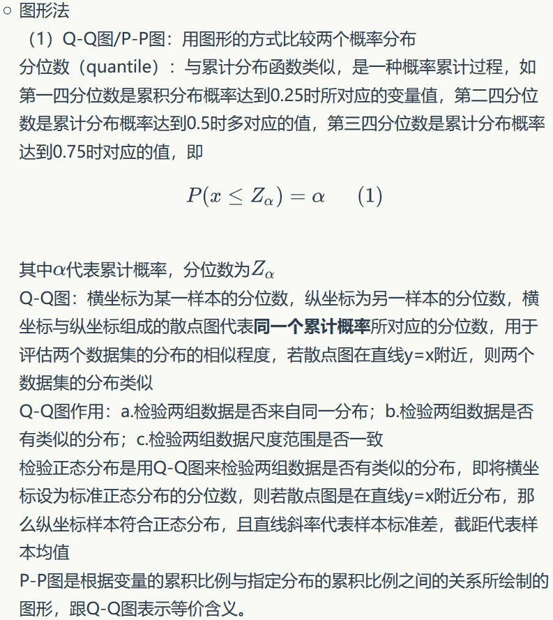 A. Q-Q图上,如果数据和基线之间几乎吻合