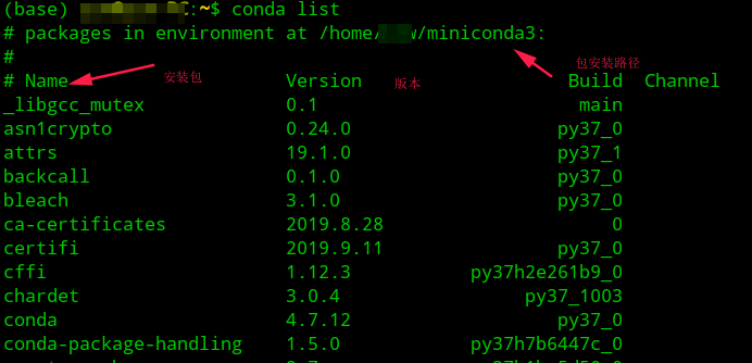 /home/user/miniconda3/envs/AI_study为虚拟环境的保存路径,可以cd到改路径下查看所安装的包