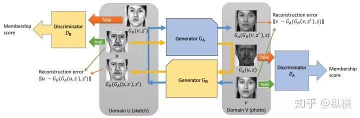 一些工作通过对偶学习,将 GAN 的生成-识别过程,扩展为生成-识别和重建-识别的过程,更充分地利用了源域和目标域的信息。DaulGAN、CycleGAN 和 DiscoGAN 的网络结构大同小异,但是 motivation 的差异很有趣: