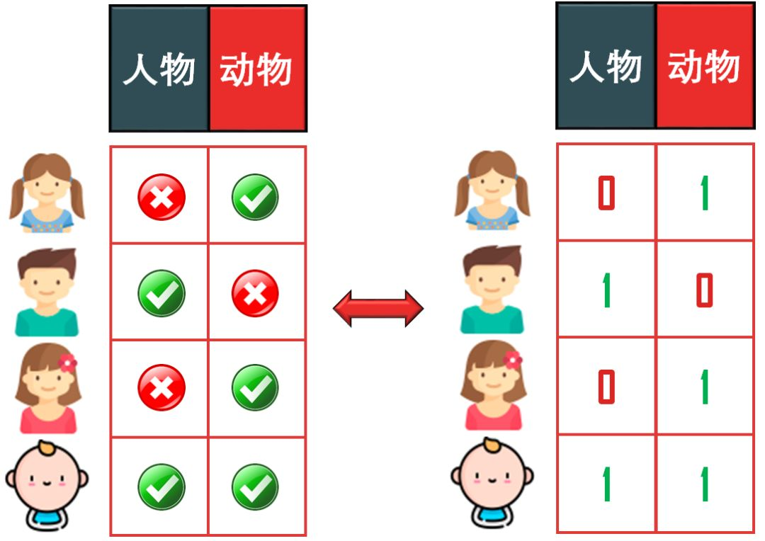 4 × 2 的「小孩-特征」矩阵