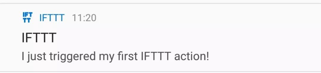 I just triggered my first IFTTT action!,然后点击 "Create action";点击 "Finish" 按钮,完成;