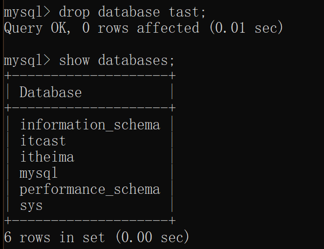 删除:drop database (if exists如果存在则删除) 数据库名称