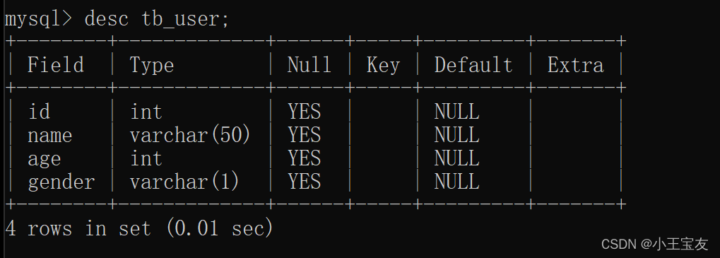 | timestamp | 4 | (1970-01-01 00:00:00到2038-01-19 03:14:07) | YYYY-MM-DD HH:MM:SS |