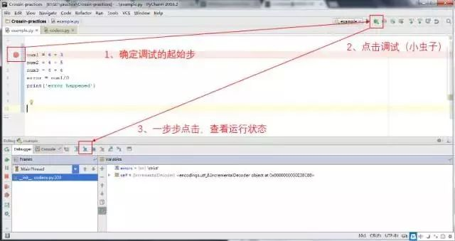 强大的 Pycharm 为我们提供了方便易用的断点调试功能,步骤如下图所示: