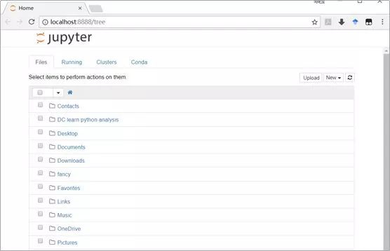在cmd环境下,输入命令:jupyter notebook之后就可以启动jupyter botebook编辑器,启动之后会自动打开浏览器,并访问http://localhost:8088,默认跳转到http://localhost:8088/tree