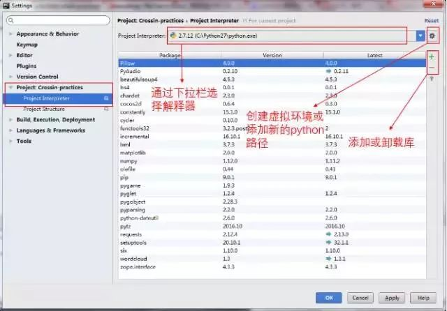 当有多个版本安装在电脑上,或者需要管理虚拟环境时,Project Interpreter 提供方便的管理工具。