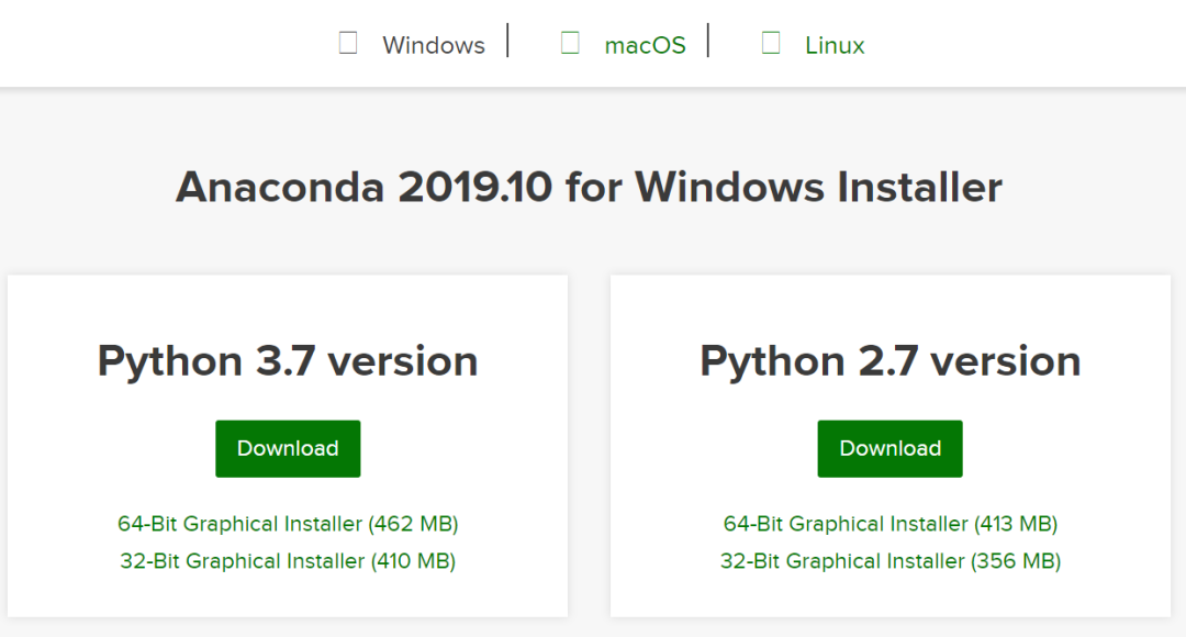 根据你的电脑系统,选择相应版本的 Anaconda(记住选择 Python 3.6或者3.7 的版本),Mac OS 用户选择 Mac 版本即可,如果不想麻烦,请选择 Graphical Installer。