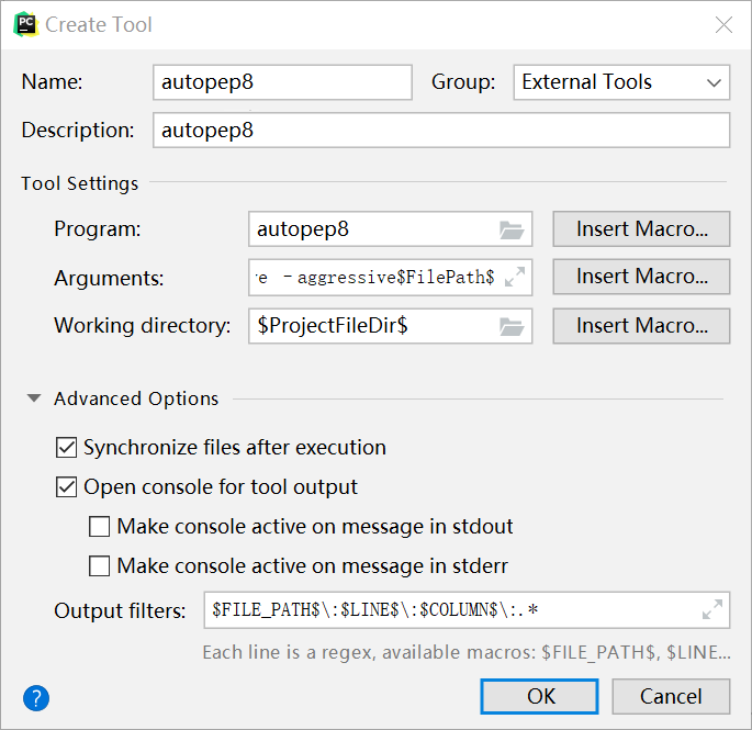 文件(file)-设置(settings)-外部工具(external-tools)-添加,其中: