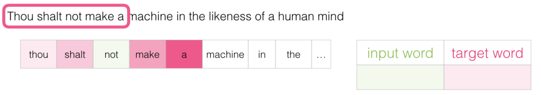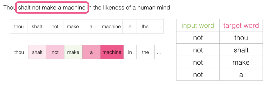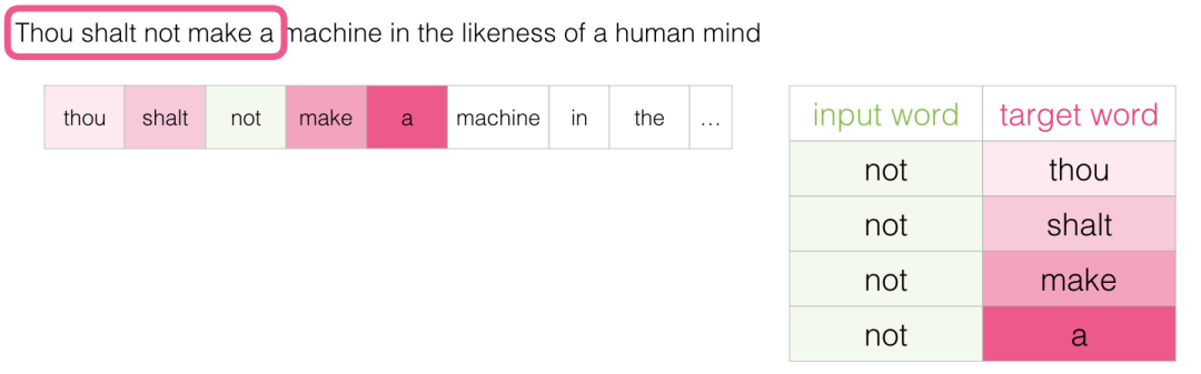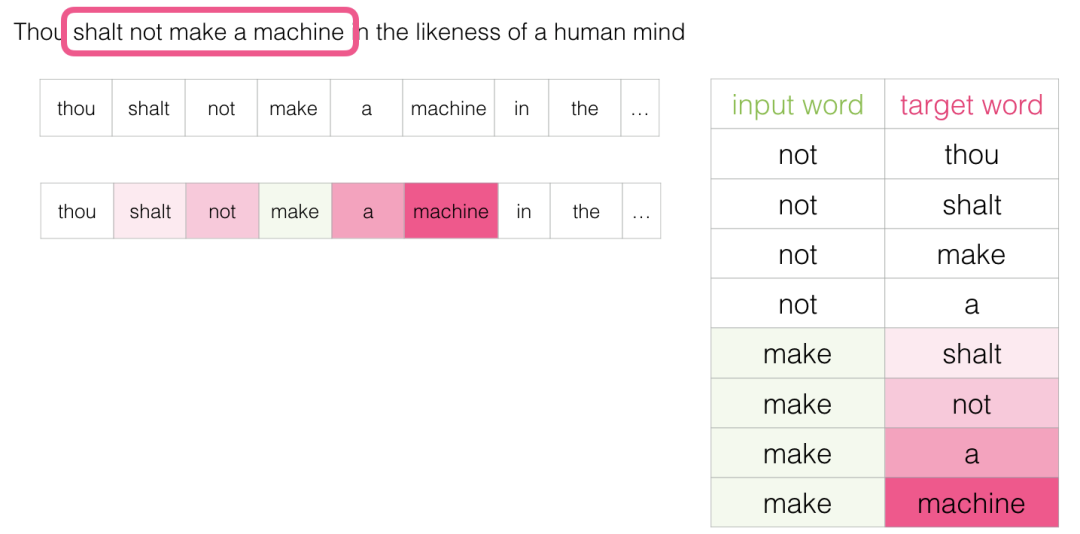 此方法称为skipgram架构。我们可以执行以下操作将滑动窗口可视化: