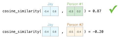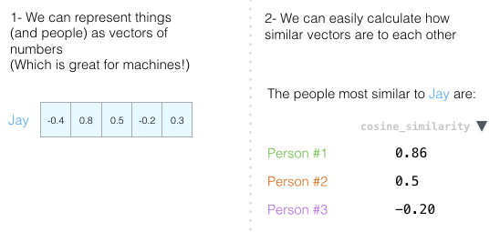 我们可以很容易地计算出相似的向量彼此之间的关系。