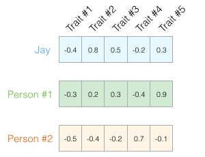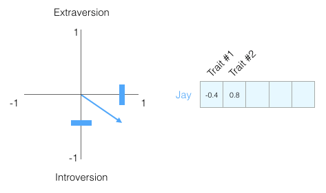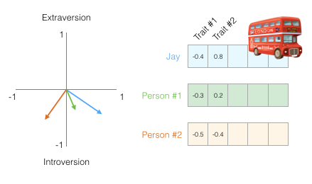 你可能不知道每个维度代表什么,但仍然可以从一个人的个性的向量表示中获得了很多有用的信息。