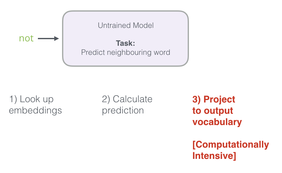 从计算的角度来看,第三步非常消耗资源:尤其是我们将在数据集中为每个训练样本做一次(很可能数千万次)。我们需要做一些事情来提高效率。