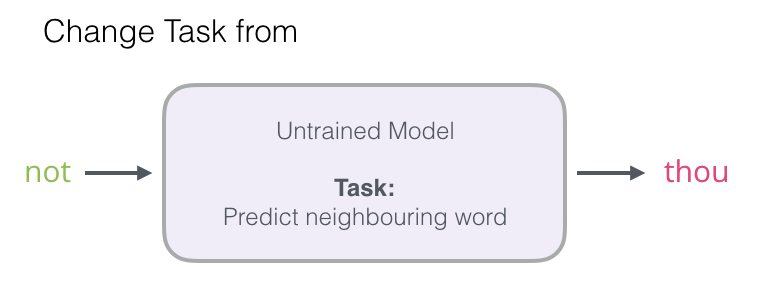 我们将专注于第1步,因为我们专注于嵌入。要使用高性能模型生成高质量嵌入,我们可以从预测相邻单词切换模型的任务: