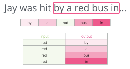 我在这里给你的背景是空格之前的五个字(以及之前提到的“bus”)。我相信大多数人都会猜到空格里的这个词会是“bus”。但是,如果我再给你一条信息:空格之后的一句话,那会改变你的答案吗?