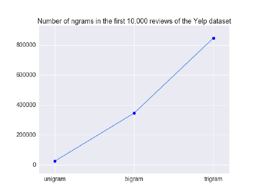 图3-6 Number of unique n-gram in the first 10,000 reviews of the Yelp dataset