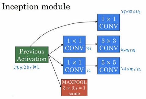 所以Inception网络只是很多这些你学过的模块在不同的位置重复组成的网络,所以如果你理解了之前所学的Inception模块,你就也能理解Inception网络。