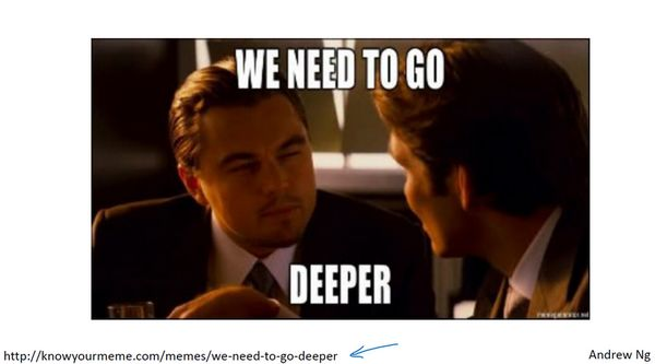 最后,有个有趣的事实,Inception网络这个名字又是缘何而来呢?Inception的论文特地提到了这个模因(meme,网络用语即“梗”),就是“我们需要走的更深”(We need to go deeper),论文还引用了这个网址(http://knowyourmeme.com/memes/we-need-to-go-deeper),连接到这幅图片上,如果你看过Inception(盗梦空间)这个电影,你应该能看懂这个由来。作者其实是通过它来表明了建立更深的神经网络的决心,他们正是这样构建了Inception。我想一般研究论文,通常不会引用网络流行模因(梗),但这里显然很合适。