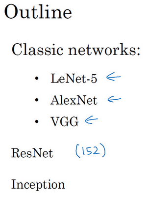 这周我们首先来看看一些卷积神经网络的实例分析,为什么要看这些实例分析呢?上周我们讲了基本构建,比如卷积层、池化层以及全连接层这些组件。事实上,过去几年计算机视觉研究中的大量研究都集中在如何把这些基本构件组合起来,形成有效的卷积神经网络。最直观的方式之一就是去看一些案例,就像很多人通过看别人的代码来学习编程一样,通过研究别人构建有效组件的案例是个不错的办法。实际上在计算机视觉任务中表现良好的神经网络框架往往也适用于其它任务,也许你的任务也不例外。也就是说,如果有人已经训练或者计算出擅长识别猫、狗、人的神经网络或者神经网络框架,而你的计算机视觉识别任务是构建一个自动驾驶汽车,你完全可以借鉴别人的神经网络框架来解决自己的问题。