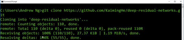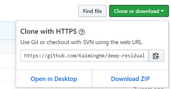 假设你对残差网络感兴趣,那就让我们搜索GitHub上的ResNets,那么你可以在GitHub看到很多不同的ResNet的实现。我就打开这里的第一个网址,这是一个ResNets实现的GitHub资源库。在很多GitHub的网页上往下翻,你会看到一些描述,这个实现的文字说明。这个GitHub资源库,实际上是由ResNet论文原作者上传的。这些代码,这里有麻省理工学院的许可,你可以点击查看此许可的含义,MIT许可是比较开放的开源许可之一。我将下载代码,点击这里的链接,它会给你一个URL,通过这个你可以下载这个代码。