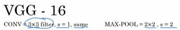 顺便说一下,VGG-16的这个数字16,就是指在这个网络中包含16个卷积层和全连接层。确实是个很大的网络,总共包含约1.38亿个参数,即便以现在的标准来看都算是非常大的网络。但VGG-16的结构并不复杂,这点非常吸引人,而且这种网络结构很规整,都是几个卷积层后面跟着可以压缩图像大小的池化层,池化层缩小图像的高度和宽度。同时,卷积层的过滤器数量变化存在一定的规律,由64翻倍变成128,再到256和512。作者可能认为512已经足够大了,所以后面的层就不再翻倍了。无论如何,每一步都进行翻倍,或者说在每一组卷积层进行过滤器翻倍操作,正是设计此种网络结构的另一个简单原则。这种相对一致的网络结构对研究者很有吸引力,而它的主要缺点是需要训练的特征数量非常巨大。
