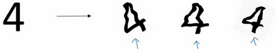 对于光学字符识别,我们还可以通过添加数字,随意旋转或扭曲数字来扩增数据,把这些数字添加到训练集,它们仍然是数字。为了方便说明,我对字符做了强变形处理,所以数字4看起来是波形的,其实不用对数字4做这么夸张的扭曲,只要轻微的变形就好,我做成这样是为了让大家看的更清楚。实际操作的时候,我们通常对字符做更轻微的变形处理。因为这几个4看起来有点扭曲。所以,数据扩增可作为正则化方法使用,实际功能上也与正则化相似。