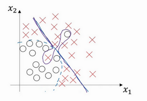 我们之前讲过,这样的分类器,会产生高偏差,因为它的数据拟合度低,像这种接近线性的分类器,数据拟合度低。