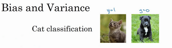 我们沿用猫咪图片分类这个例子,左边一张是猫咪图片,右边一张不是。理解偏差和方差的两个关键数据是训练集误差(Train set error)和验证集误差(Dev set error),为了方便论证,假设我们可以辨别图片中的小猫,我们用肉眼识别几乎是不会出错的。