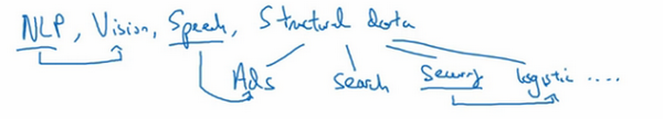 现如今,深度学习已经在自然语言处理,计算机视觉,语音识别以及结构化数据应用等众多领域取得巨大成功。结构化数据无所不包,从广告到网络搜索。其中网络搜索不仅包括网络搜索引擎,还包括购物网站,从所有根据搜索栏词条传输结果的网站。再到计算机安全,物流,比如判断司机去哪接送货,范围之广,不胜枚举。