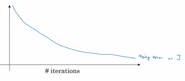 还有另外一种常用的方法叫作early stopping,运行梯度下降时,我们可以绘制训练误差,或只绘制代价函数的优化过程,在训练集上用0-1记录分类误差次数。呈单调下降趋势,如图。