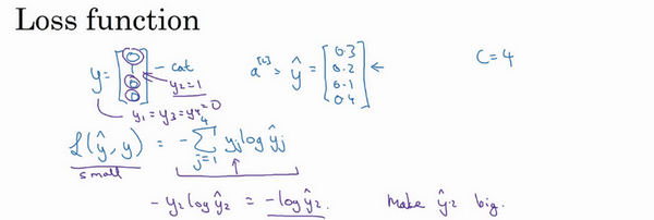 那么你想用什么损失函数来训练这个神经网络?在Softmax分类中,我们一般用到的损失函数是,我们来看上面的单个样本来更好地理解整个过程。注意在这个样本中